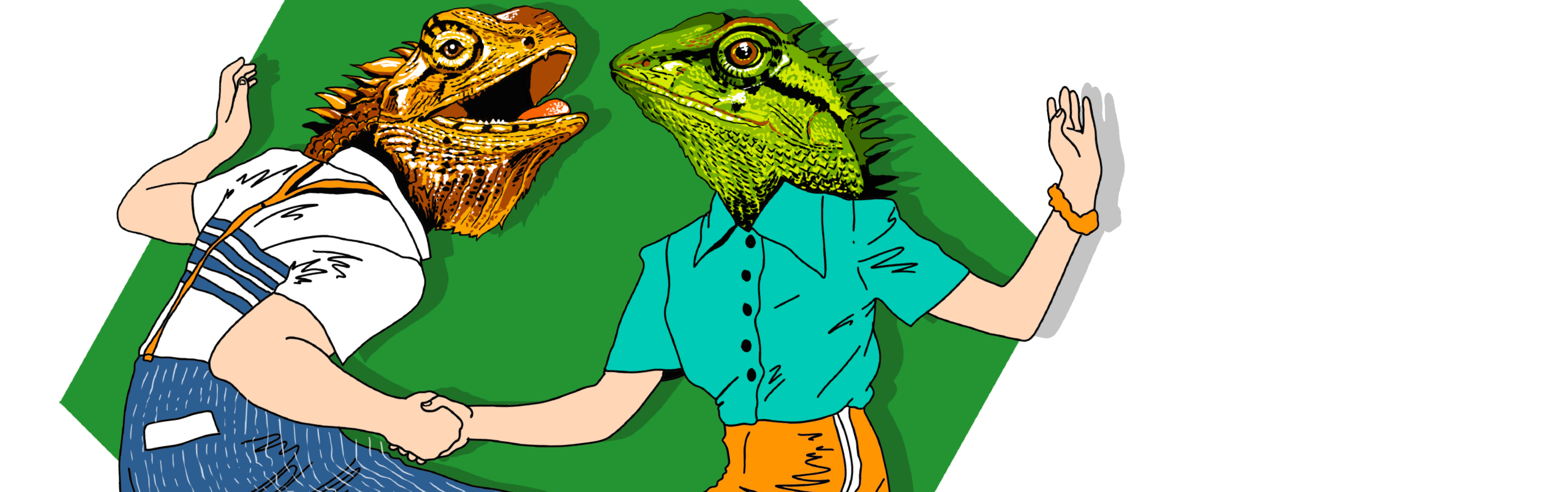 Ici, les danseurs prennent vie avec des têtes d’animaux, dans des illustrations décalées, colorées et pleines de mouvement.